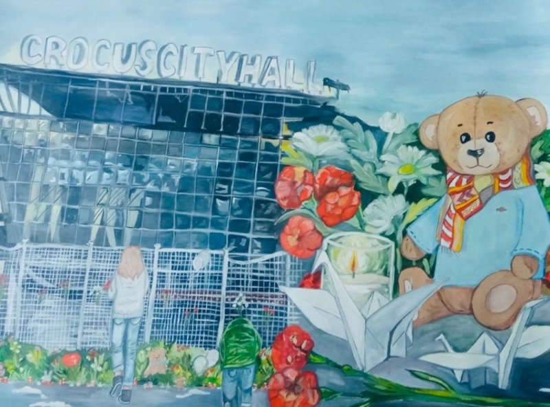 Студентка специальности 35.02.15 Кинология, Екатерина Павлова,стала участником конкурса и в своей работе по тематике «Эхо терактов» изобразила всю боль всеобщей трагедии,которая произошла в Крокусс Сити Холл.